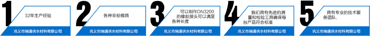鞏義市瑞通供水材料有限公司是集科技研制、生產(chǎn)制造,市場(chǎng)開(kāi)發(fā),商貿(mào)洽談、從事貨物和技術(shù)進(jìn)出口業(yè)務(wù)于一體的專業(yè)性實(shí)體生產(chǎn)企業(yè)。我公司主要產(chǎn)品已形成單球可曲撓橡膠接頭、可曲撓合成單球橡膠接頭、雙球橡膠接頭、加固型翻邊橡膠接頭、異徑橡膠接頭(大小頭)。